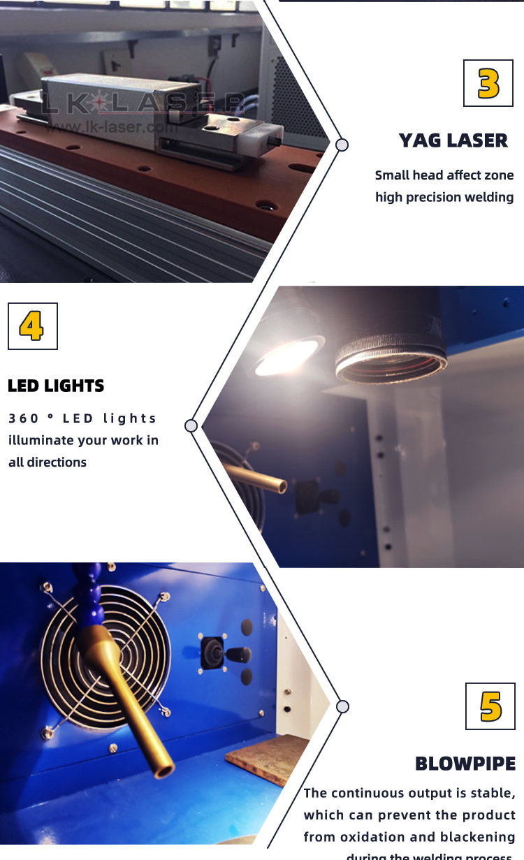 Machine could adjust the welding parameter via inside worktable joystick and outside LCD screen