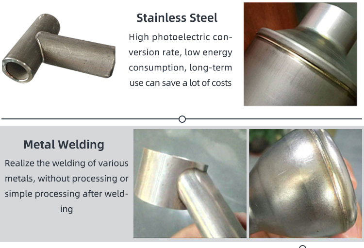 working principle is to generate high temperature by continuous pulse laser focusing, melt stainless steel material or titanium alloy, equipped with professional computer software automation system to realize integral one-time welding,