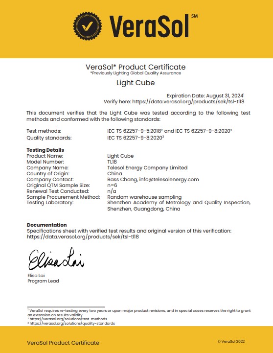 Tested with IEC standards and have VERASOL certificate
